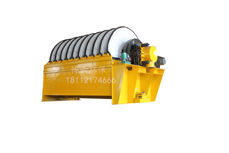 盤式真空過濾機由各個單獨的扇形片的圓盤構(gòu)成。每一個扇形片為 單獨的過濾單元,由濾布做成布套在扇形片上形成濾室。過濾盤由電機通過減速器及開式齒輪傳動來驅(qū)動 ,過濾盤順時針方向轉(zhuǎn)動,濾室里的礦漿在吸附區(qū)借助于真空泵在過濾介質(zhì)兩側(cè)形成的壓力差,附著在過 濾盤上形成濾餅后,攪拌器旋轉(zhuǎn)防止固體沉淀,濾餅離開液面后,在真空作用下繼續(xù)脫去水分。濾液透過 濾布,經(jīng)過濾液管,從分配頭排出。濾餅在卸料區(qū)由反吹風(fēng)卸料落入排料槽,整個作業(yè)過程連續(xù)循環(huán)進行 。